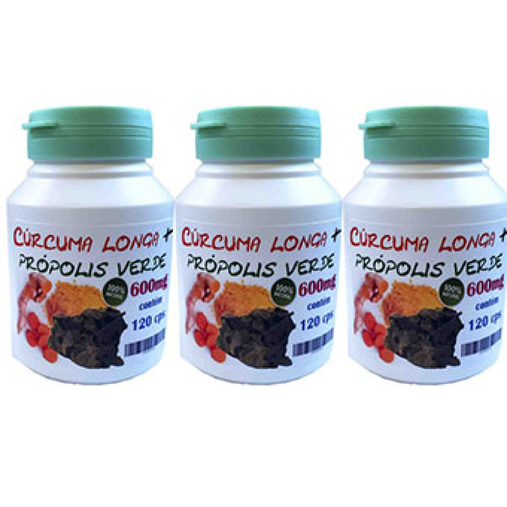 Extrato artesanal Cúrcuma + Própolis 3 potes de 120 cápsulas 600mg (Açafrão) Cúrcuma longa extrato seco com 5% de própolis verde