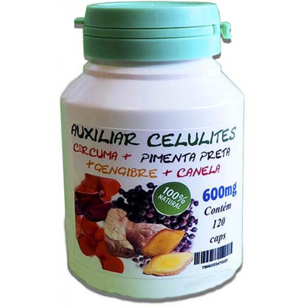 Auxiliar Celulite/Termogênico 3 potes de 120 cápsulas - 600mg Extrato artesanal Cúrcuma com pimenta preta + Gengibre + Canela.